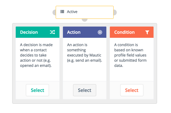 Decisions are actions which are initiated by the contact. These decisions can be either directly initiated or implied based on non-action. Samples of these decisions are downloading an asset, opening an email, submitting a form, or visiting a landing page.